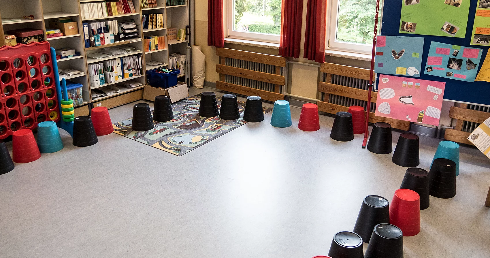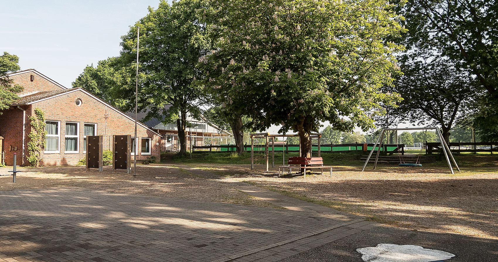 - großer Schulhof mit einem Bolzplatz, einem Klettergerüst u.a.